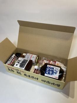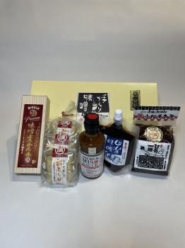 ひる一膳(粒)500g・田楽みそ150g・プレミアムミソソース180ml・甘をとめ3個入・味噌ようかんの詰め合わせです。